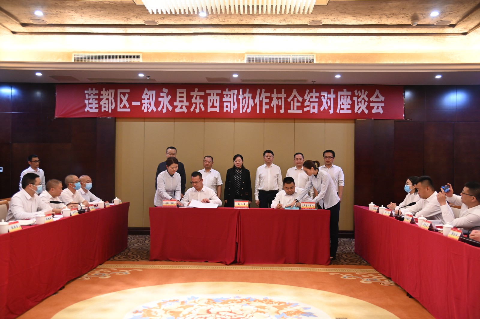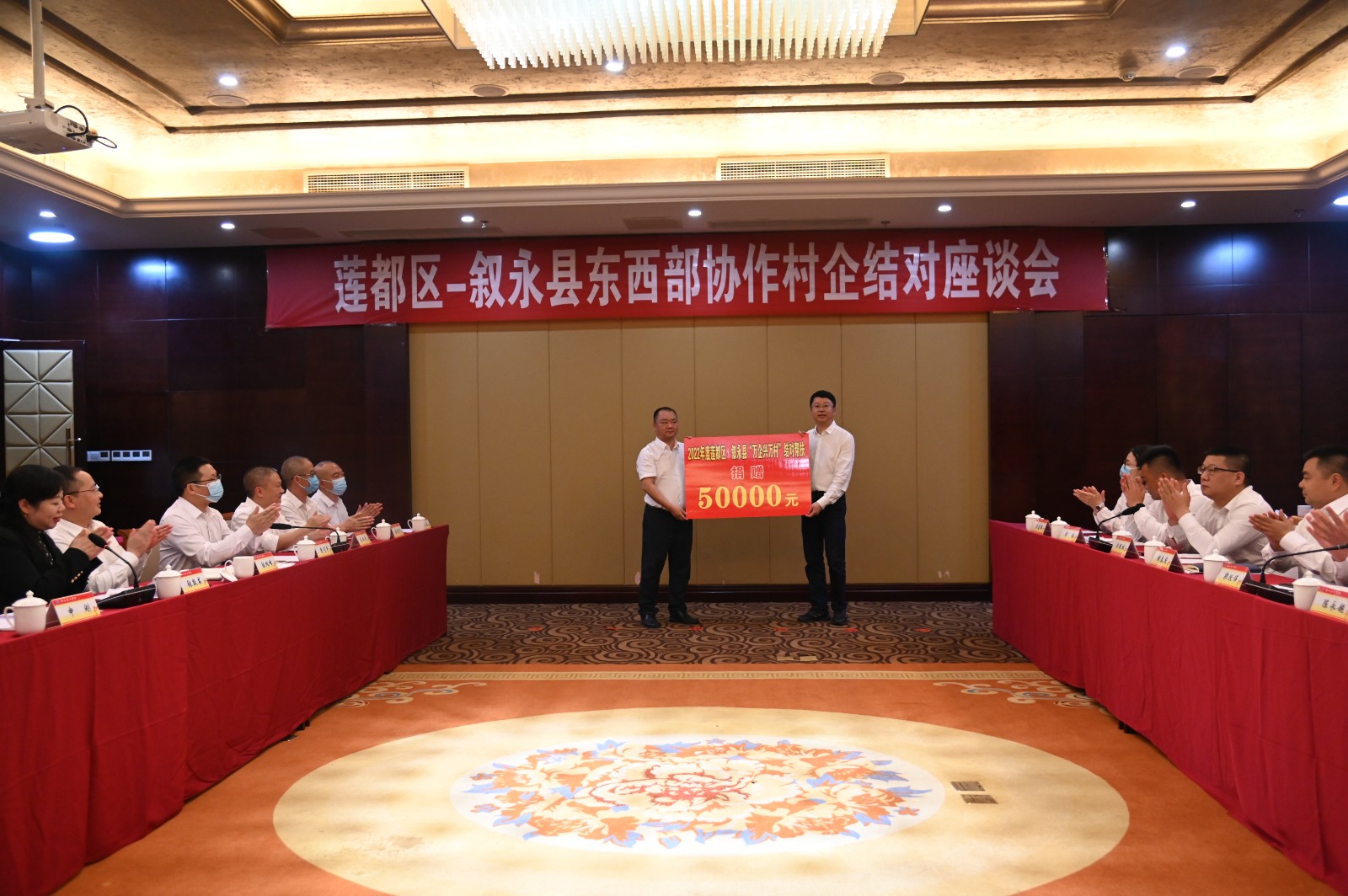 会议期间,丽水市5家具有代表性的企业分别与合乐苗族乡方元村、叙永镇红岩村、石厢子乡堰塘村、摩尼镇联盟村、水尾镇广木村签订了结对协议,莲都区现场为叙永县“万企兴万村”结对帮扶捐款5万元。